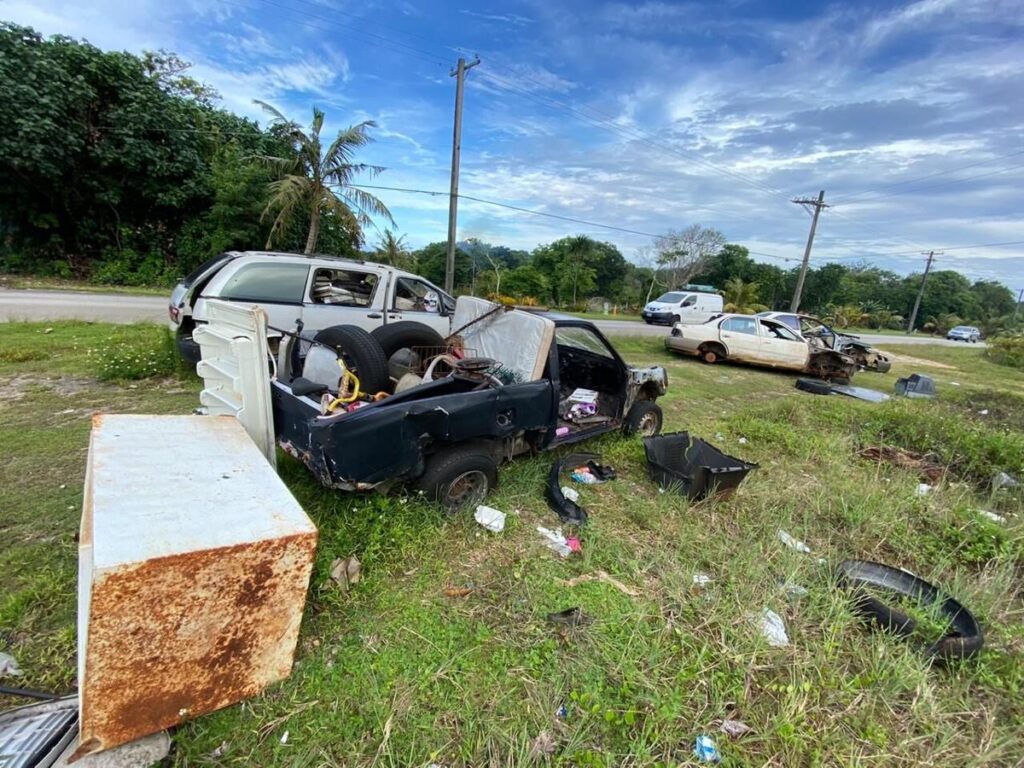 Several abandoned vehicles filled with white goods, metallic waste and household trash are scattered along Wusstig Road in Dededo on July 31, 2020. Photo by Dontana Keraskes/The Guam Daily Post