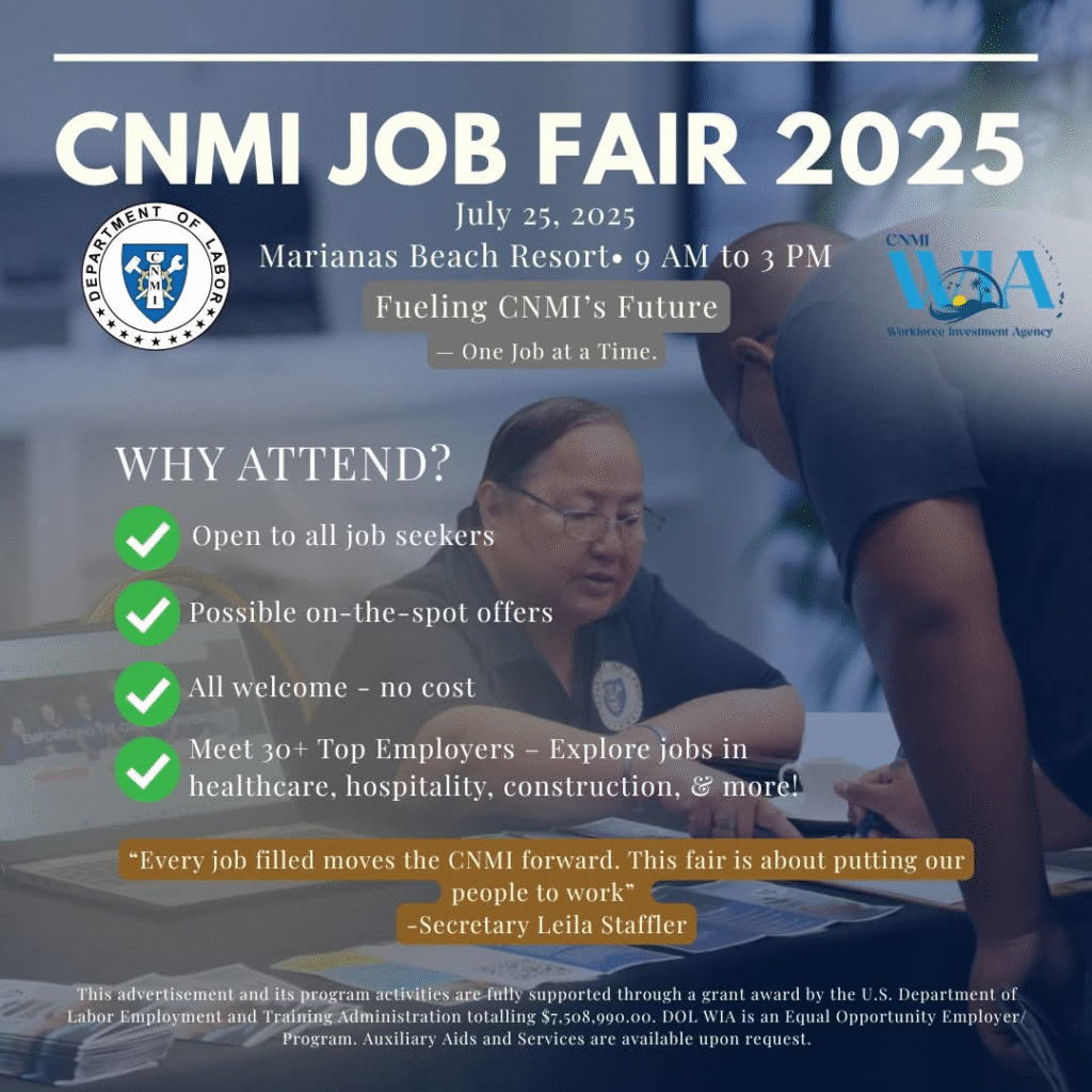 Cruz added that the CNMI Department of Labor’s role in the economy is to ensure a “well-prepared, competitive, and sustainable workforce.”