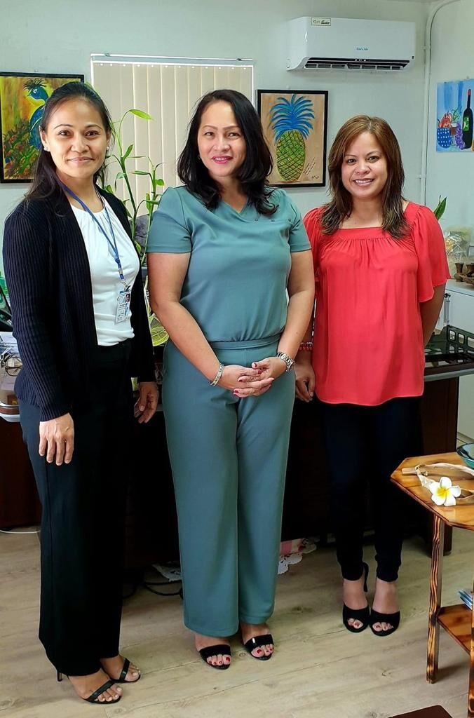 Office of Vocational Rehabilitation Director Maryann Borja-Arriola, center, poses with Community Guidance Center Director Reyna Saures and Clinical Services Officer Dr. Glenda George after finalizing a memorandum of agreement between OVR and the Commonwealth Healthcare Corp. to strengthen and effectively carry out their programs for individuals with disabilities. Contributed photo