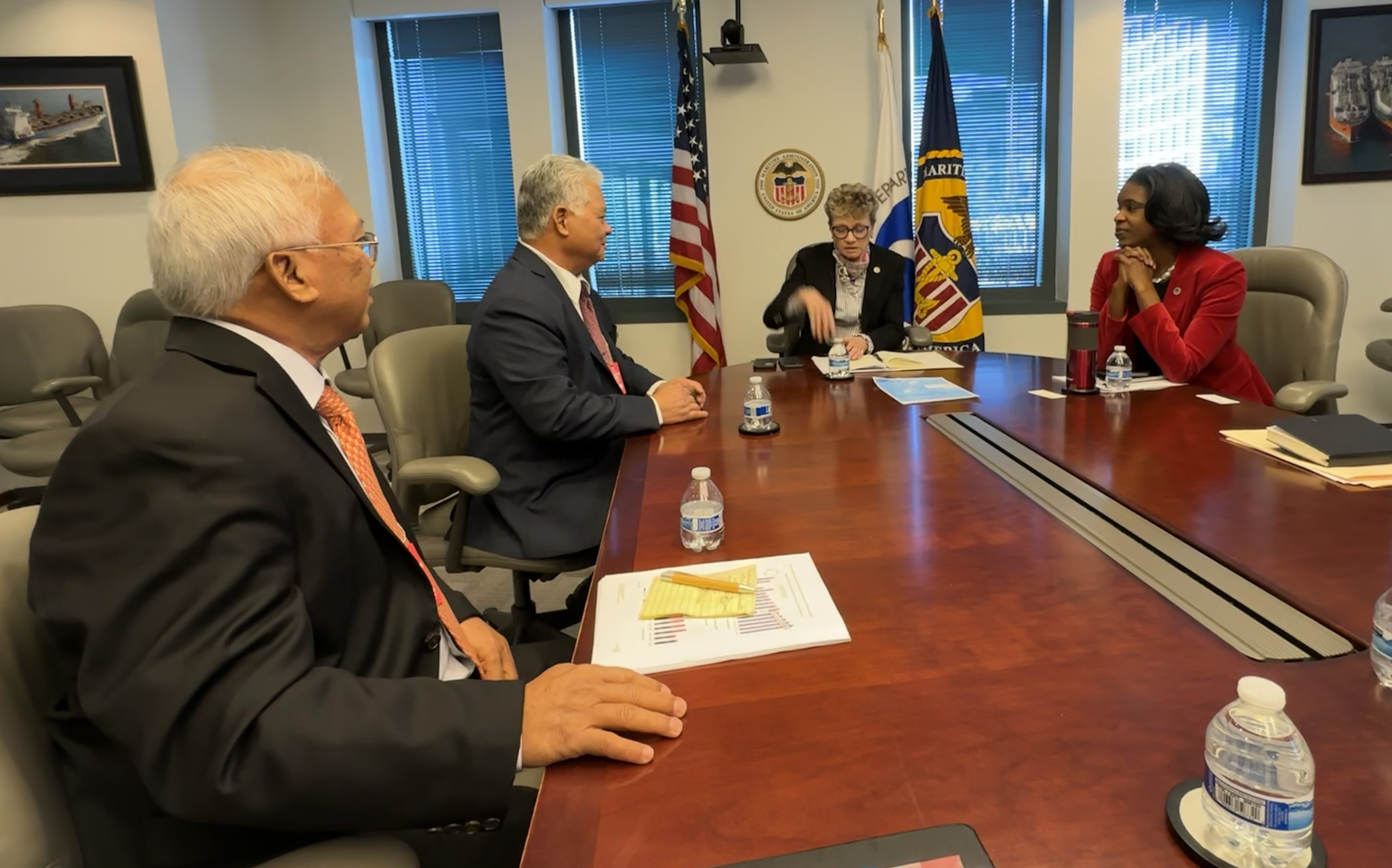 Gov.  Arnold I. Palacios and Commonwealth Ports Authority Chair Jose Ayuyu met last week with retired Rear Admiral Ann C. Phillips, the administrator of the Department of Transportation Maritime Administration, Deputy Administrator Tamekia Flack,  Executive Director Jack Kammerer and other senior leaders of MARAD to discuss the port infrastructure needs on Saipan, Rota and Tinian. MARAD supports the technical aspects of maritime transportation infrastructure, including ships and shipping, port and vessel operations, national security, environment, and safety.  The governor’s travel to the nation’s capital, which included meetings with officials of different federal agencies and military branches, was funded through a federally sourced grant.