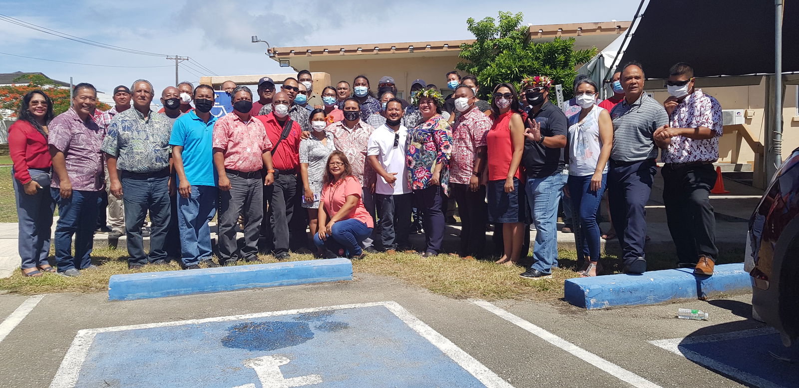 Led by Gov. Ralph DLG Torres, CNMI Republican Party officials, supporters and candidates pose for a photo at the election commission in August. Photo by K-Andrea Evarose S. Limol