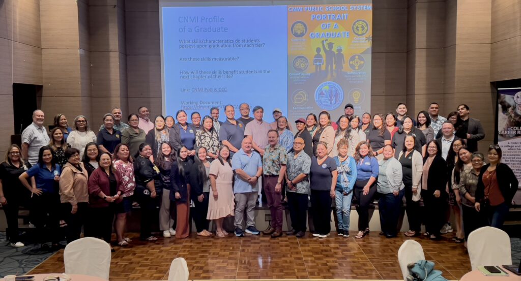 The Public School System, in collaboration with local career pathway partners, kicked off the federally funded, five-day PSS K-12 Career Pathways work session Monday at the Saipan World Resort. Led by Commissioner of Education Dr. Lawrence F. Camacho, educators and representatives from Rota, Tinian, and Saipan schools along with PSS programs gathered with partners from the University of Guam, Northern Marianas College, Northern Marianas Technical Institute, the Saipan Chamber of Commerce, lawmakers, and the private sector. The National Career Academy Coalition is spearheading this week-long session with NCAC President Dr. Jay Steele, standing center, first row, as presenter. The training is initiated by the PSS Career and Technical Education Program and is funded by the school district’s consolidated grant managed by the PSS Federal Programs Office.