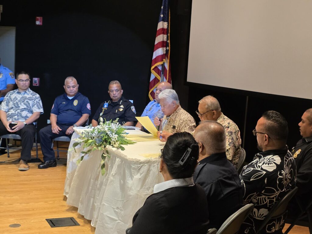 Apatang said, “I want to say thank you, too …. Your job is very hard. That’s like in the military — you work on the field 24/7, and you guys are doing the same thing to protect our community. I hear and see you guys, and sometimes I feel sorry for you guys. I feel sorry for the family waiting for you at home. That’s the job that we have to do to protect our people, our community. We thank you for that. Even the staffers at the office are working very hard to support you guys on the field. Thank you for the hard work.”