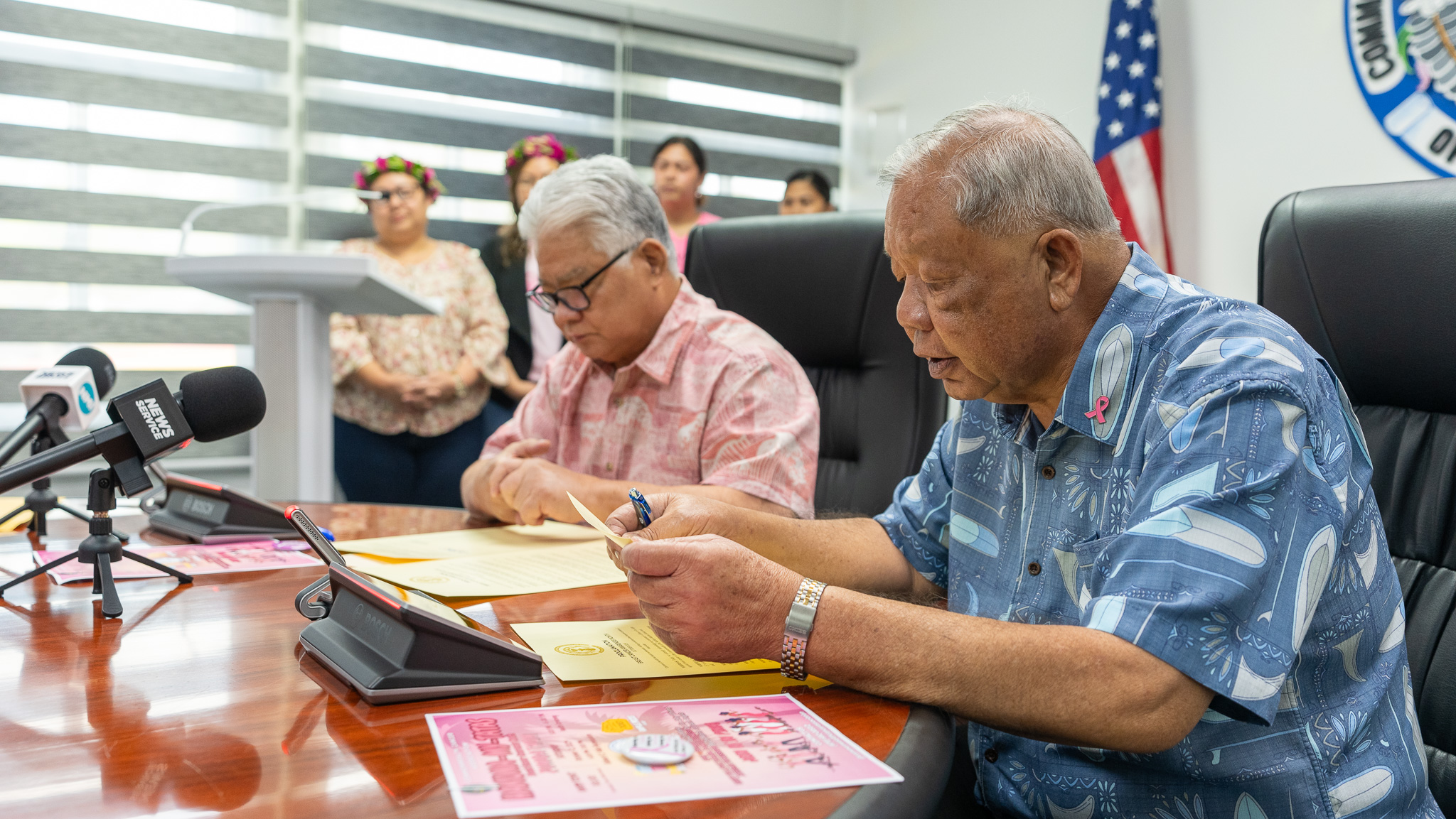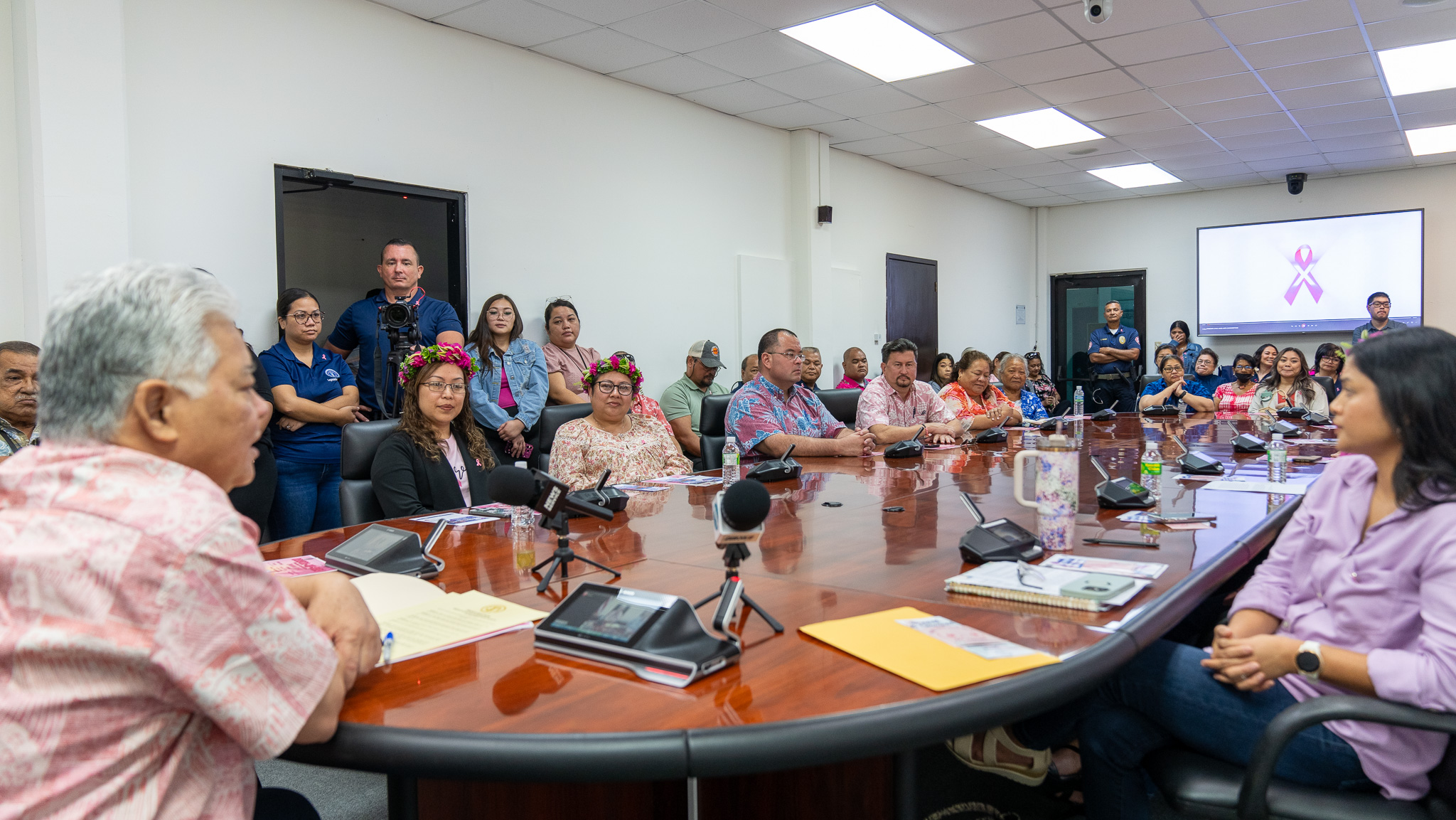 (Office of the Governor) — On Tuesday, Gov. Arnold I. Palacios and Lt. Gov. David M. Apatang, alongside the Commonwealth Cancer Association, members of the CNMI Legislature, and numerous government and community partners, officially proclaimed October as Breast Cancer Awareness Month.