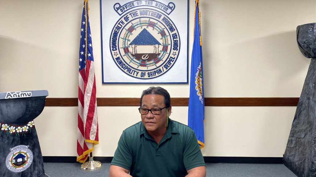 Saipan Mayor RB Camacho holds a press conference on Thursday morning at his office.