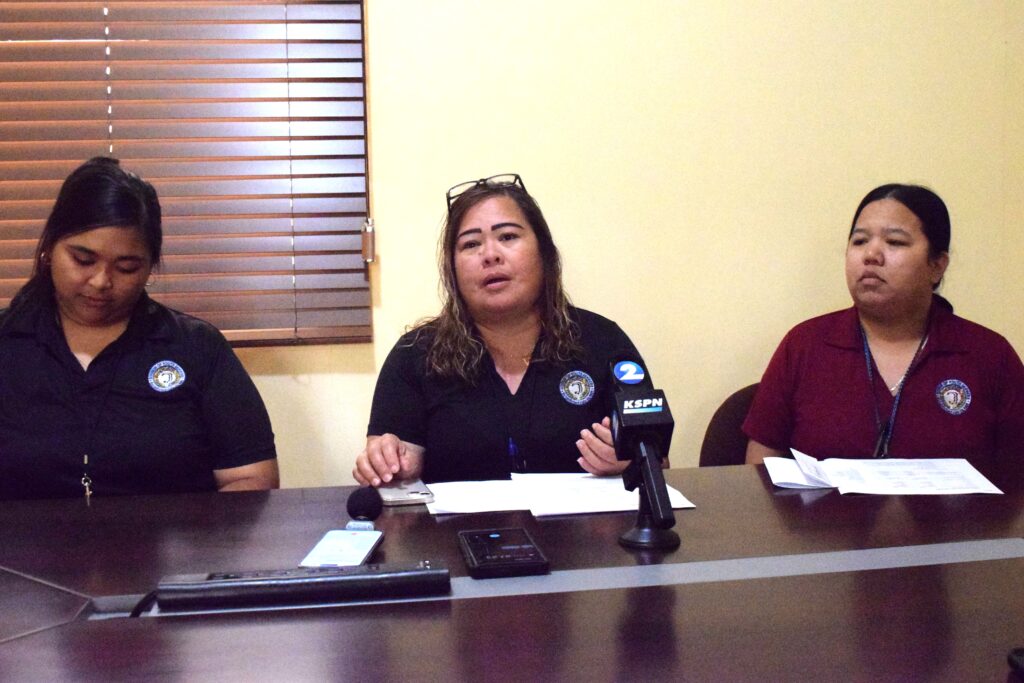 Division of Youth Services Administrator Vivian Sablan, center, speaks to members of the media on Capital Hill, Wednesday. Also in photo are Child Protective Services Intervention Acting Supervisor Mariah Barcinas, left, and CPS case worker Juanicia Villanueva.
