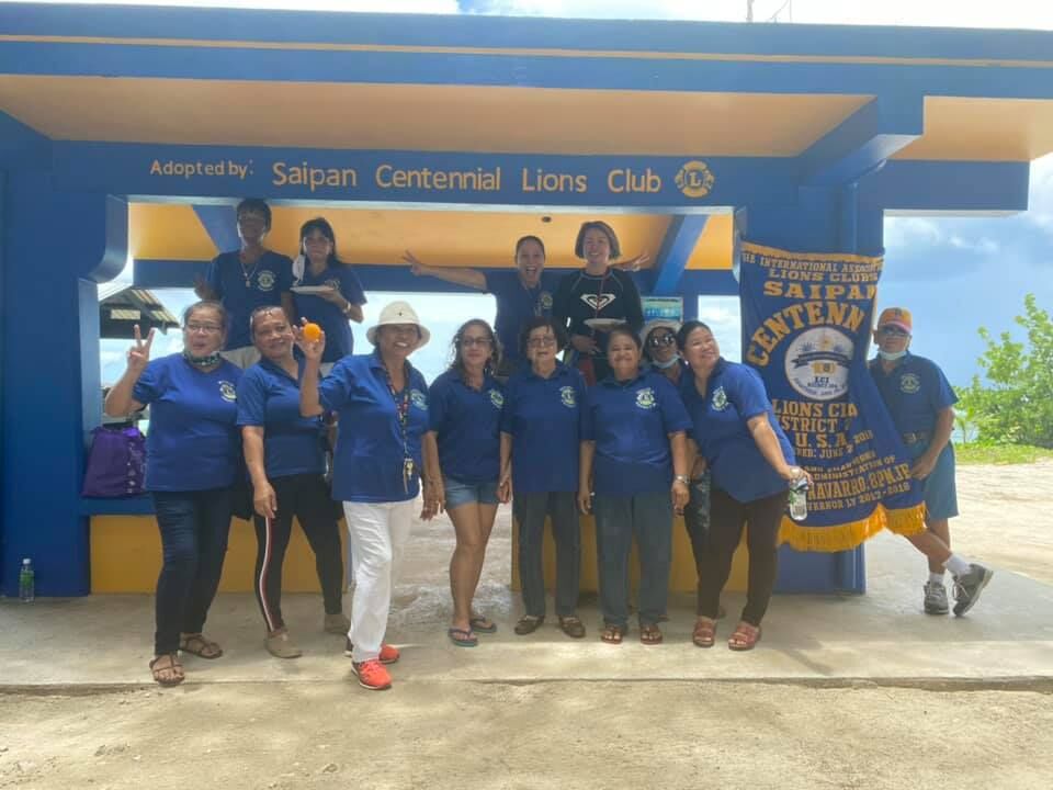 Members of the Saipan Centennial Lions Club pose after repainting and renovating a pavilion at Sugar Dock Beach.