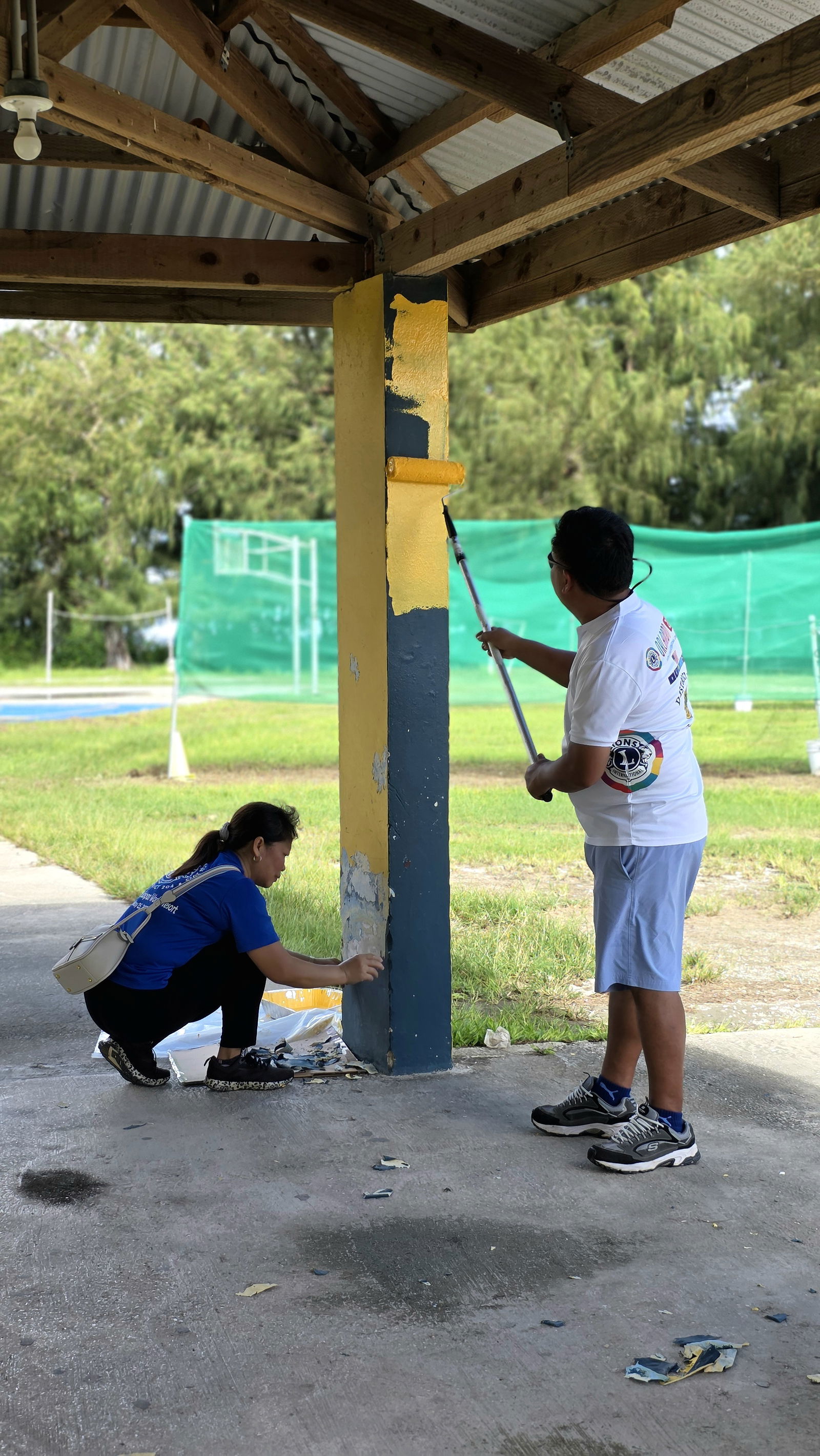 Tasks included painting the hallway, repainting the school entrance logo, and cleaning up the school grounds.