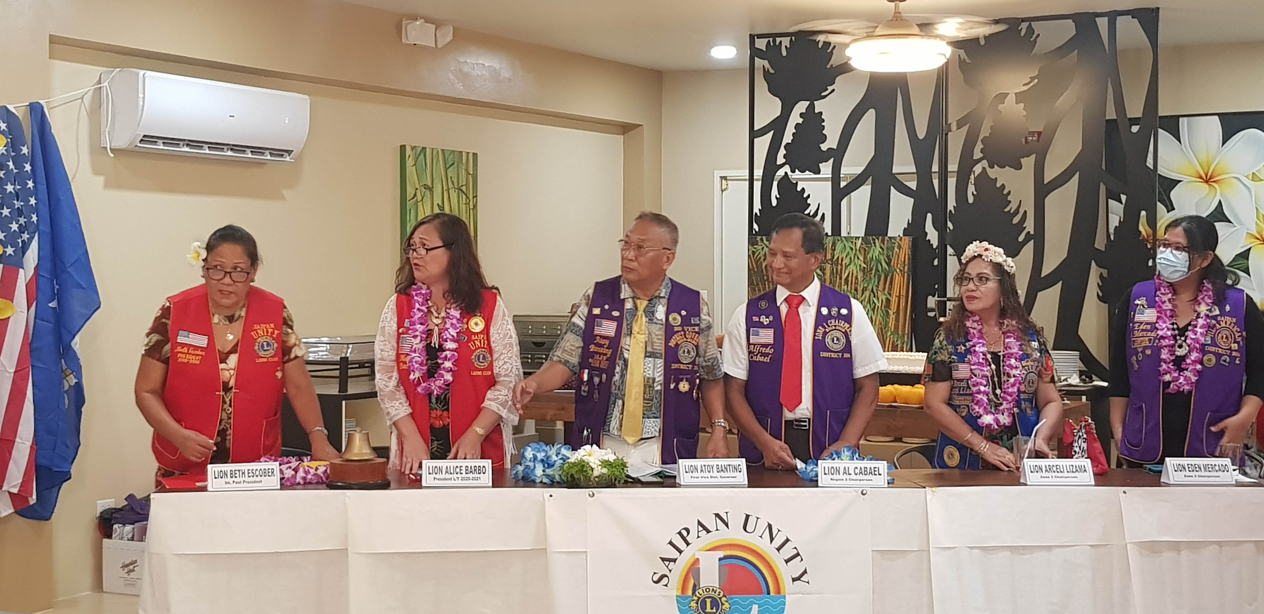 From left, immediate past president of the Saipan Unity Lions Club Elizabeth Escober, club president Alice Barbo, district first vice governor Atoy Banting, Region 2 chair Alfred Cabael, zone 1 chair Arceli Legaspi and zone 2 chair Eden Mercado.
