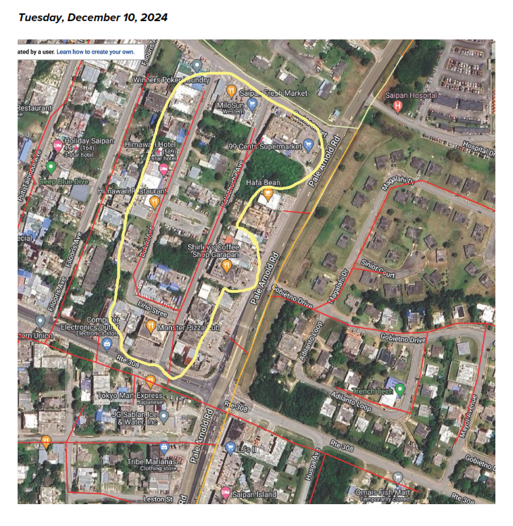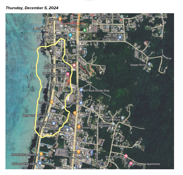 • Areas affected: Garapan (Kalachucha Ave, Lirio St., and Bukiki Ave.)