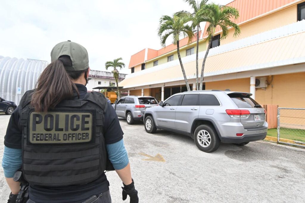 Federal law enforcement agents execute a search warrant at the MedPharm compound in Dededo, Guam on Tuesday. Photo by David Castro/The Guam Daily Post