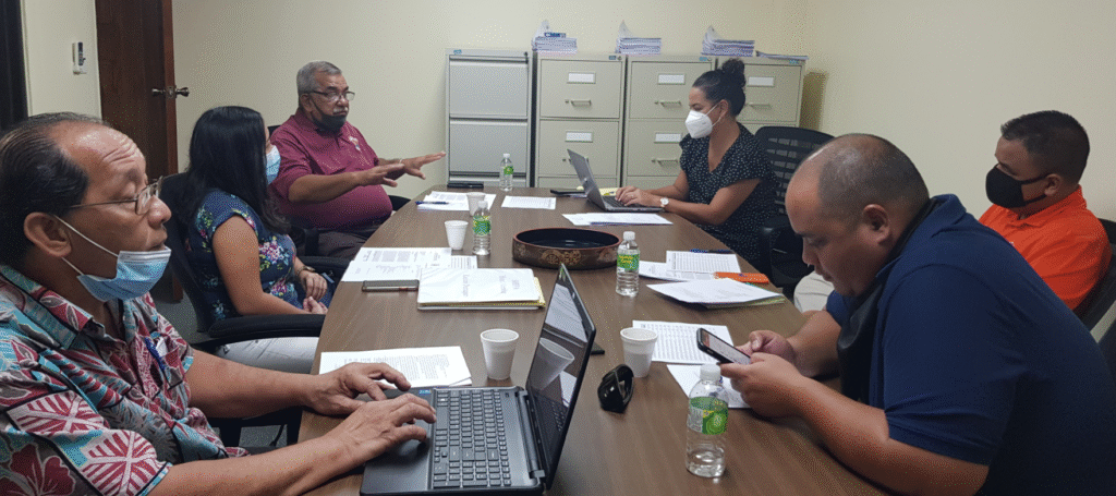 Saipan Higher Education Financial Assistance program board chairman Oscar M. Babauta speaks during a meeting at the Saipan Mayor’s Office in San Jose, on Thursday. Also in photo are administrator Merissa Rasa, board members Francisco D. Cabrera, Kaelani Demapan, Juan K. Tenorio and Raymond M. Mafnas. Photo by Emmanuel T. Erediano