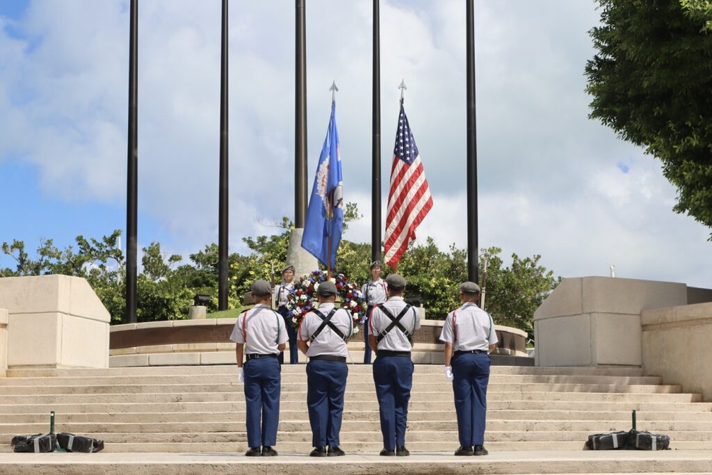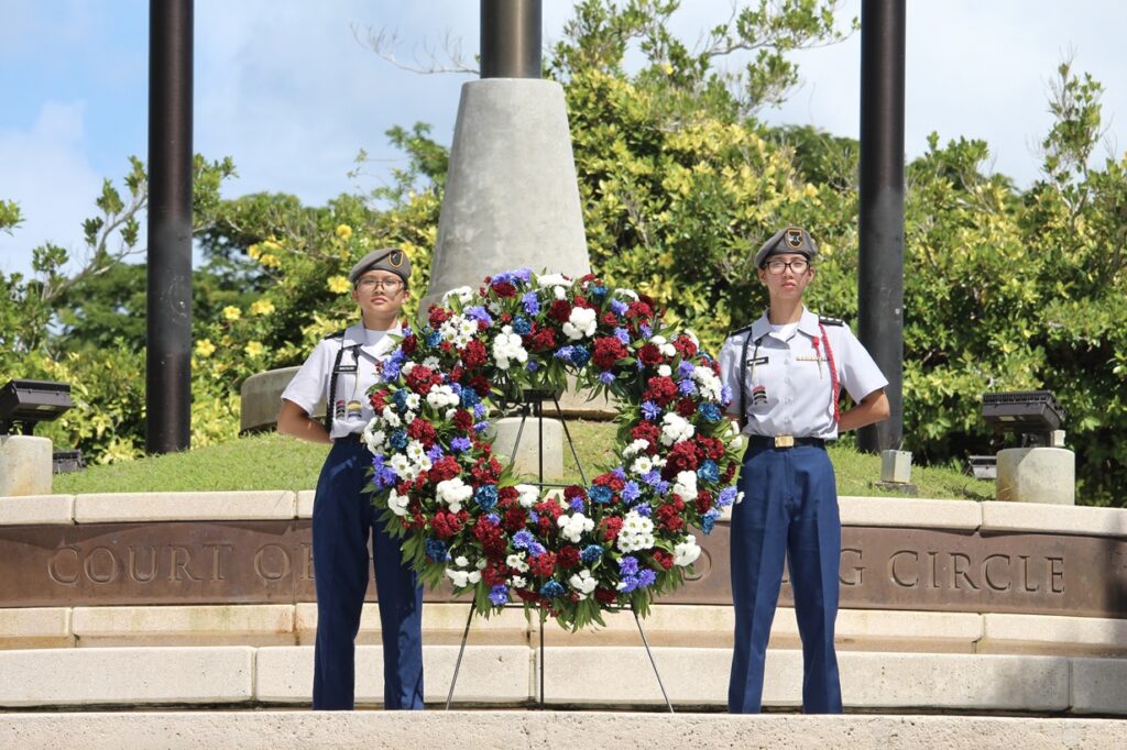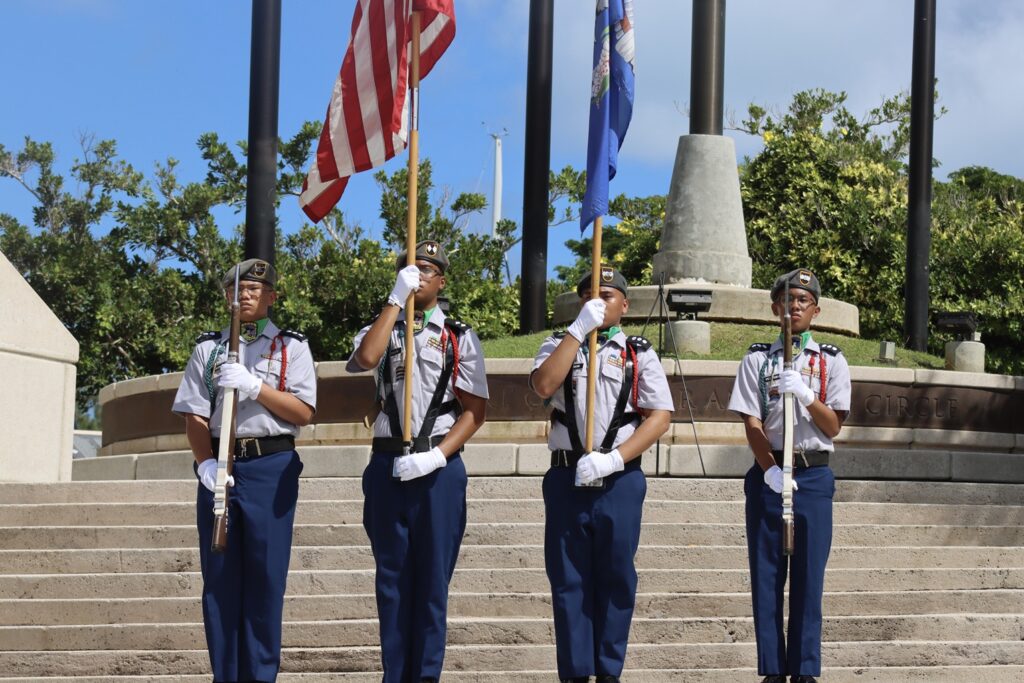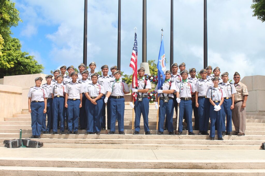 This year’s ceremony was held at American Memorial Park on Tuesday from 11 a.m. to 12 p.m. 25 Cadets, along with their Senior Army Instructor, CSM (Ret.) Richard Basa from Saipan Southern High School’s Manta Ray Battalion arrived at around 8:30 a.m. to help prepare for the event, setting up chairs and distributing programs and water bottles to guests.