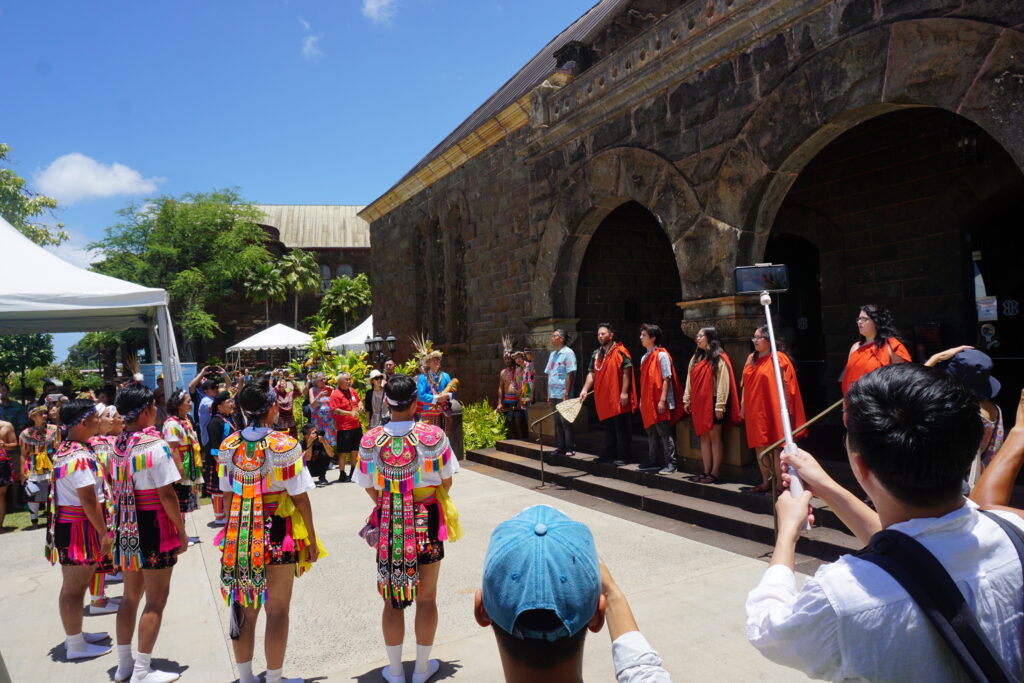 Hawaiian cultural artists then welcomed the Taiwanese delegates into the Hawaiian Hall Complex with an opening exchange of chants.