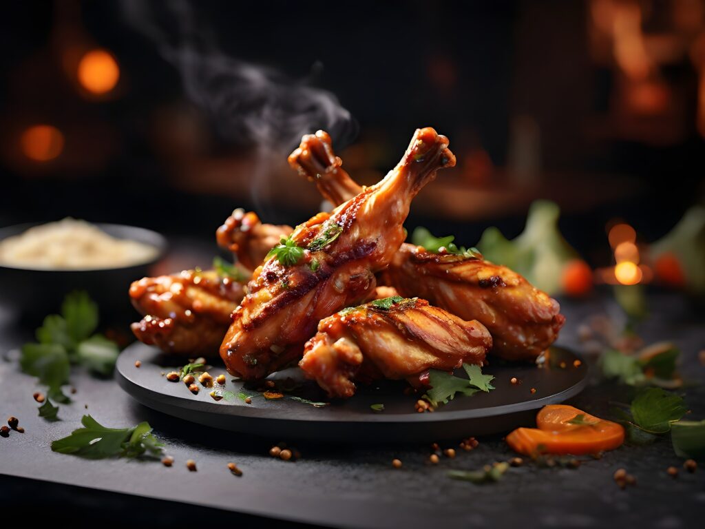 The final step is a high, hot sear at the end to crisp up the chicken wing.