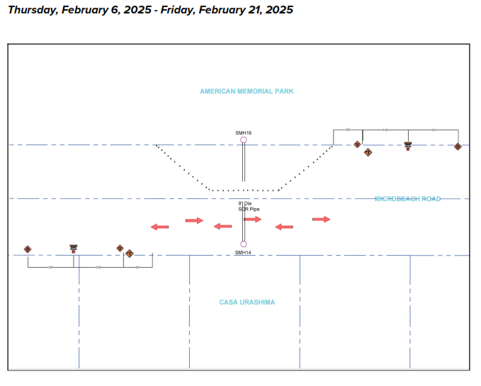 (Commonwealth Utilities Corporation) — There will be traffic delays and sewage odor along Micro Beach Road in Lower Miha, Garapan due to an ongoing sewer line replacement project. The odor is expected as existing sewer lines are exposed and replaced during the construction process.
