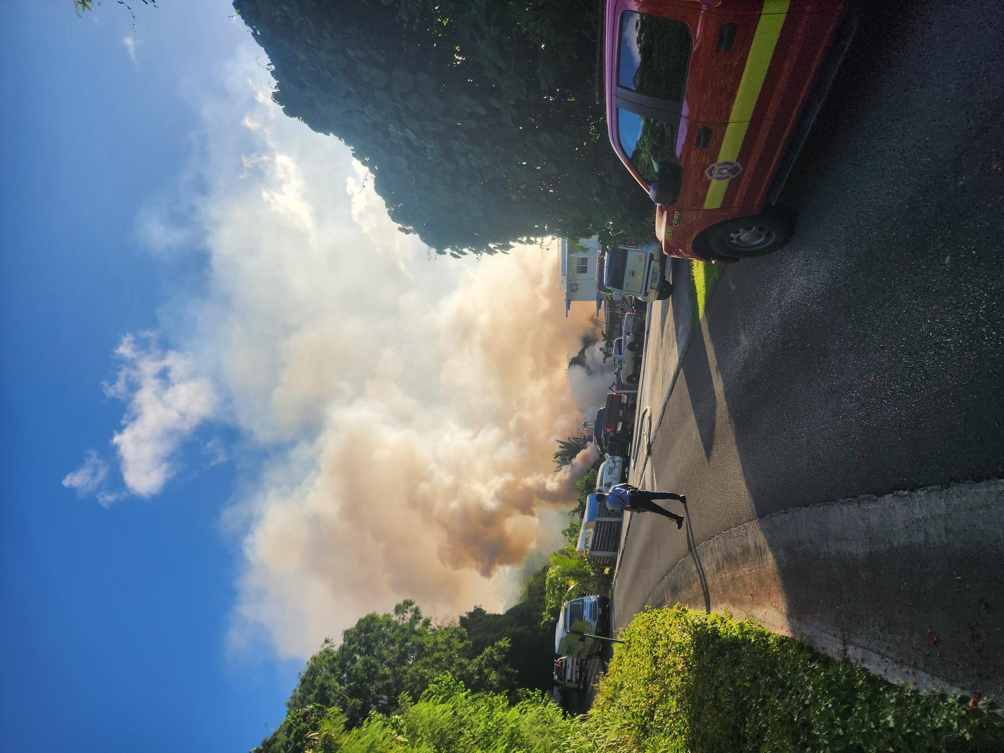 At 3:29 p.m., DFEMS added, “Forestry-2, Engine- 2, and Medic- 2, responded to the described location. At 3:33 p.m. all three units were the first to arrive on the scene, conducted a scene size up and reported to dispatch that there was a trash fire that was near a structure. It looked like piles of wood and other debris and the fire was heading towards the surrounding vegetation. At 7:21 p.m. Alpha Shift Commander Captain C. Laniyo reported that the main fire was under control and they were beginning mop up. The Division of Fire Prevention and Arson investigators arrived on the scene to investigate and assess the cause of fire. At this time the cause of the fire remains under investigation and will be determined at a later date by DFAI.”