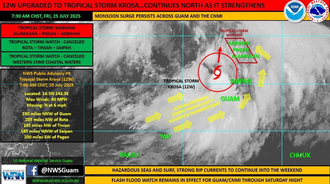 AS TROPICAL STORM KROSA (12W) MOVES AWAY FROM SAIPAN, TINIAN, AND ROTA BUT STILL POSES A THREAT TO AGRIHAN, ALAMAGAN,