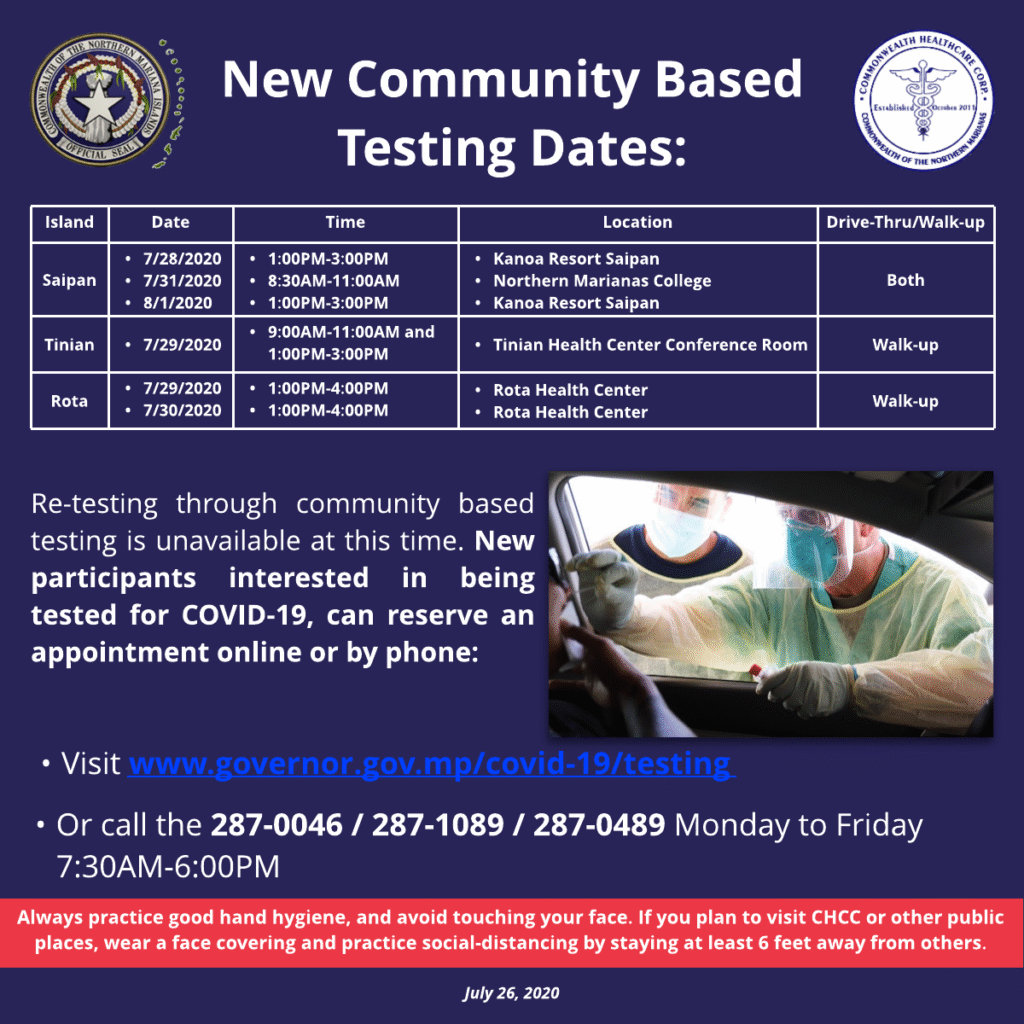 Updated CNMI community-based Covid-19 testing initiative schedule