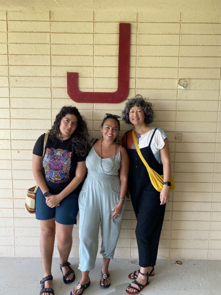Prior to a meeting with students at Northern Marianas College, White House Environmental Justice Advisory Council members Maria Lopez-Nuñez, left, and Miya Yoshitani, right, pose for a picture with Tishman Environment and Design Center communication lead Angelica Salazar. They were invited to Saipan by former Rep. Sheila Babauta.