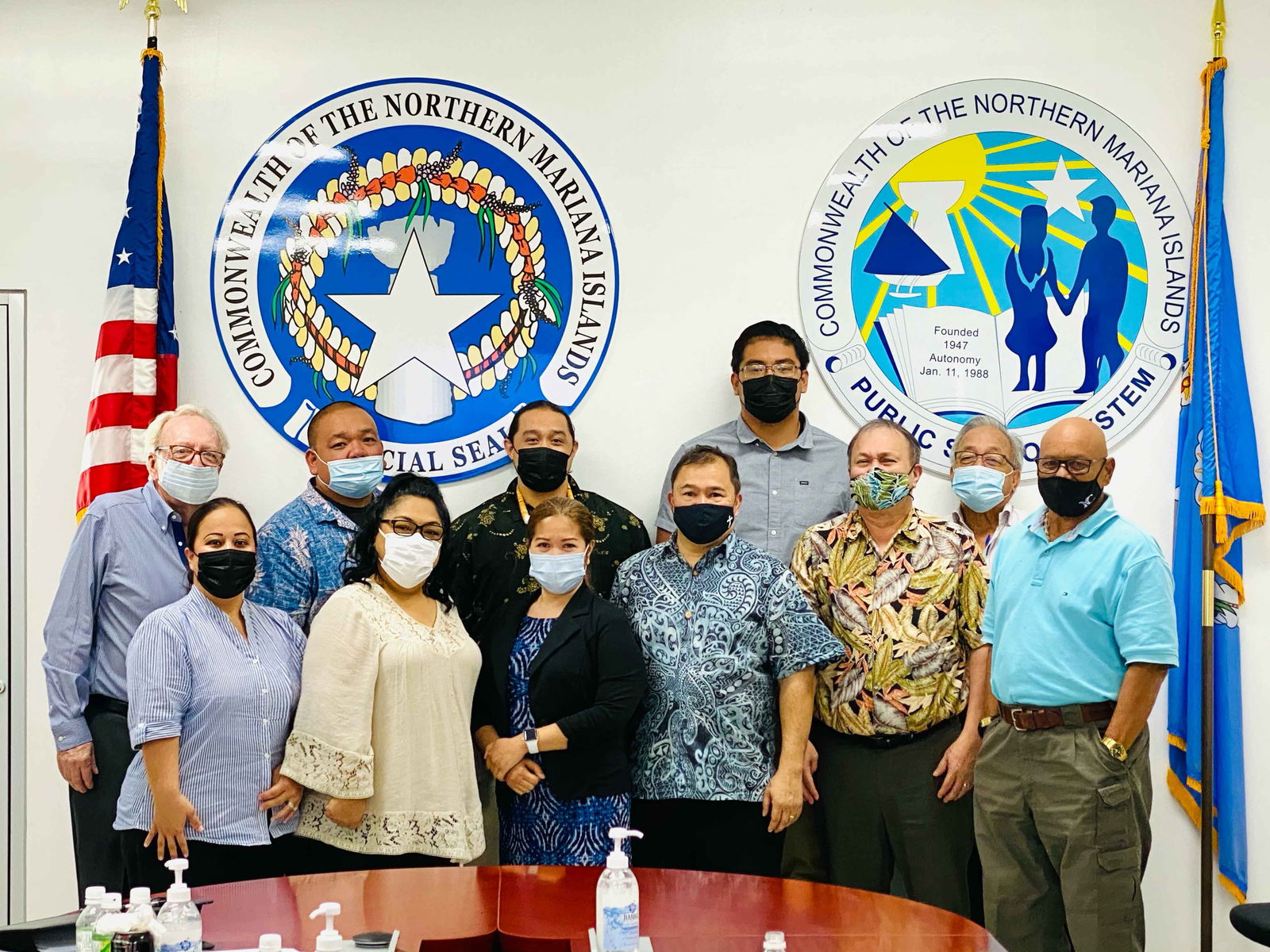 The Public School System’s new finance director, Arlene Lizama, 3rd left, front row, and comptroller Michael Babauta, 3rd left, back row, were introduced on Wednesday afternoon by Commissioner of Education Dr. Alfred B. Ada and Board of Education Chairwoman Janice Marie A. Tenorio during a BOE meeting. Also in  photo are  associate commissioner for administrative services Eric Magofna, PSS federal programs officer Tim Thornburgh, human resources officer Lucretia Borja, internal auditor George Palican, BOE Vice Chairman Herman Atalig, Board Members Andrew L. Orsini and Antonio Borja.