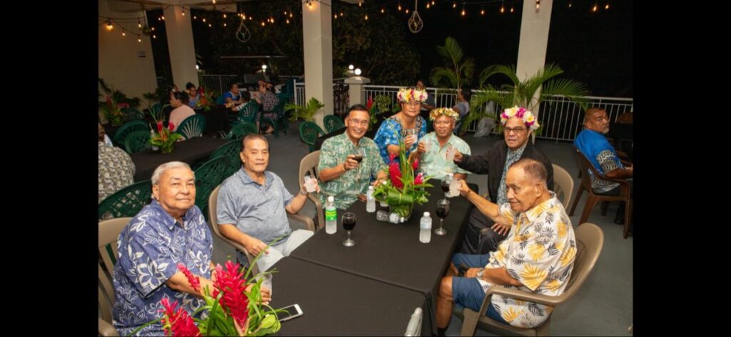 McDonald’s Guam and Saipan Jose C. Ayuyu, 3rd right, and his wife, Marcia, center, hosted a dinner for FSM President Wesley Simina, 2nd left, and Chuuk Gov. Alexander Narruhn (not in photo) at their residence in San Vicente two weeks ago. With them are former Gov. Benigno R. Fitial, right, former Gov. Juan N. Babauta, third left, former Rep. John “Liling” Reyes, 2nd left, and former Commonwealth Ports Authority Executive Director Leo Tudela, left.