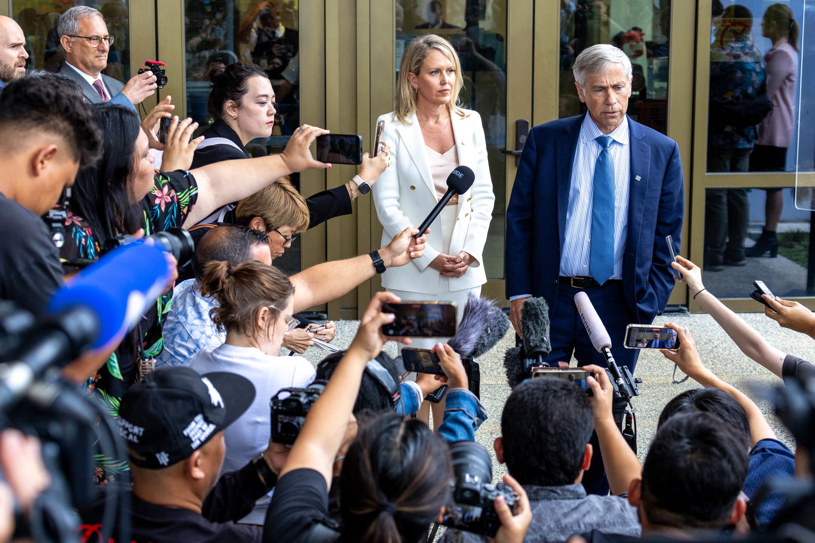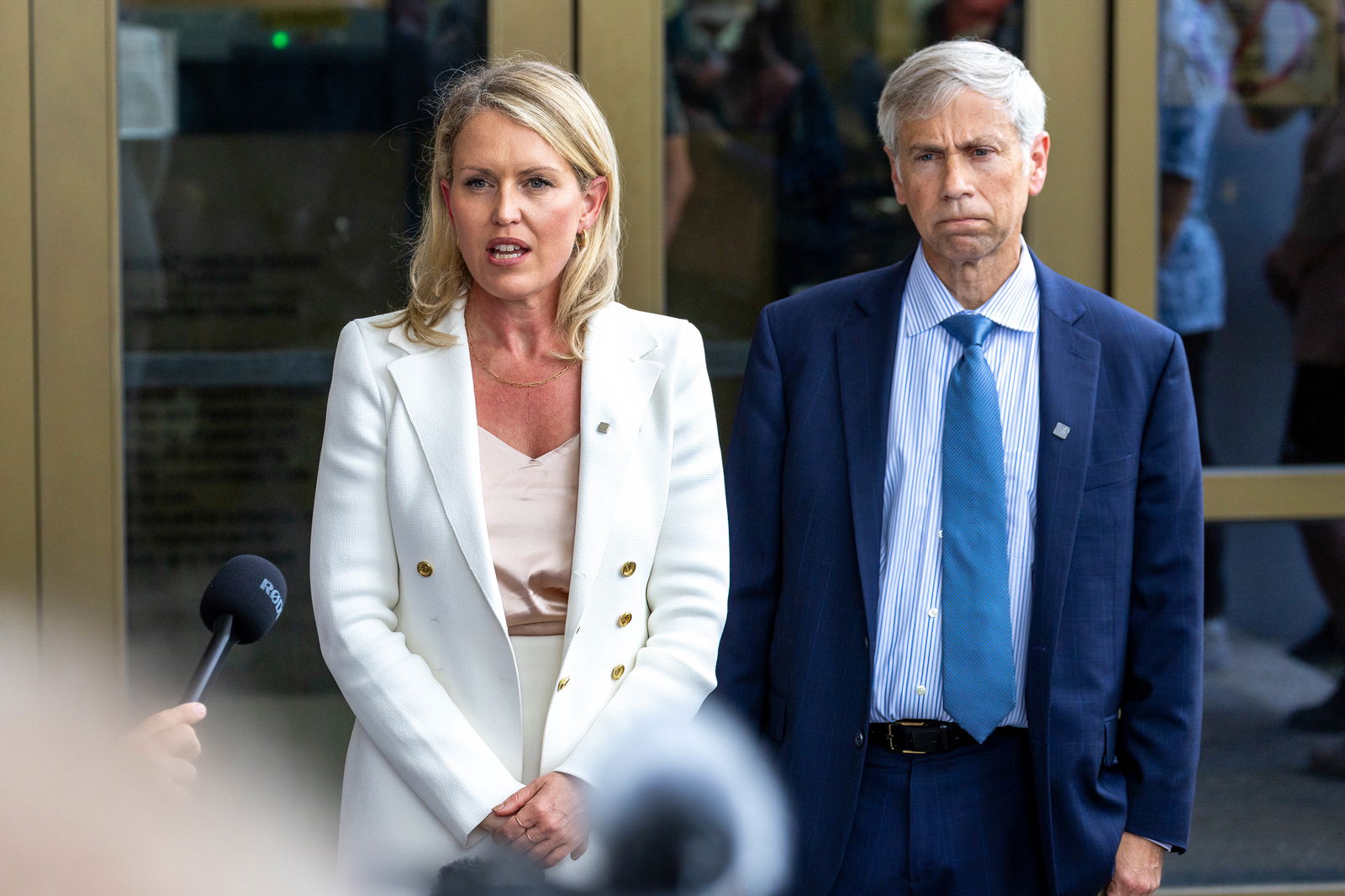 Julian Assange’s attorneys, Barry Pollack of the U.S. and Jennifer Robinson of Australia, conduct a press conference outside the U.S. Courthouse on Wednesday.