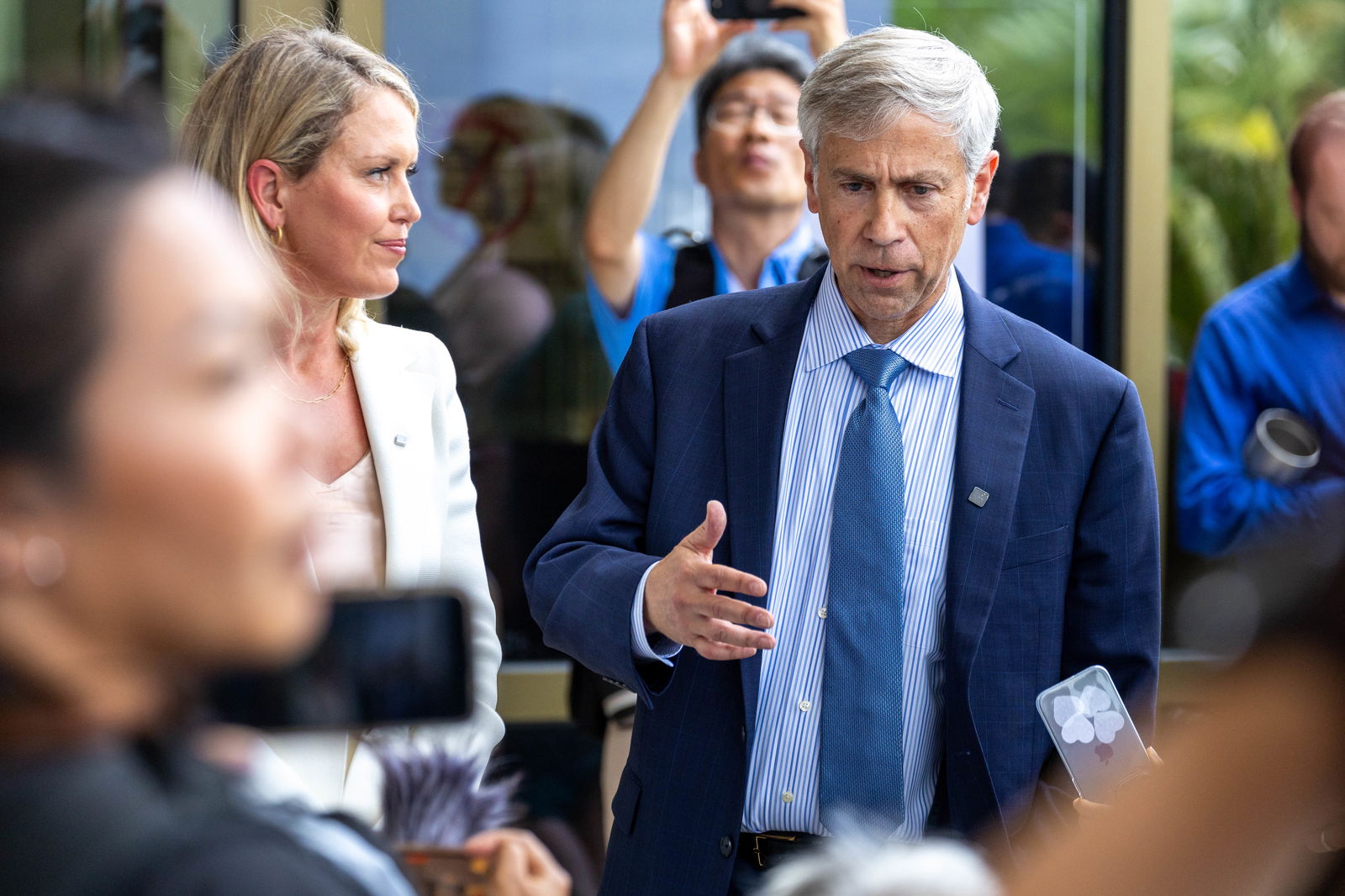 WikiLeaks founder Julian Assange walks outside United States District Court following a hearing, in Saipan, Northern Mariana Islands, June 26, 2024.
