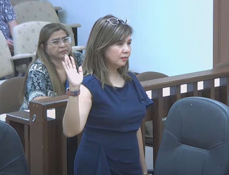 Businesswoman Eleanor B. Alinas, the governor’s nominee to the Zoning Board, is sworn in during her appearance before the Saipan and Northern Islands Legislative Delegation’s Judiciary and Governmental Operations Committee on Tuesday, May 28, 2024.
