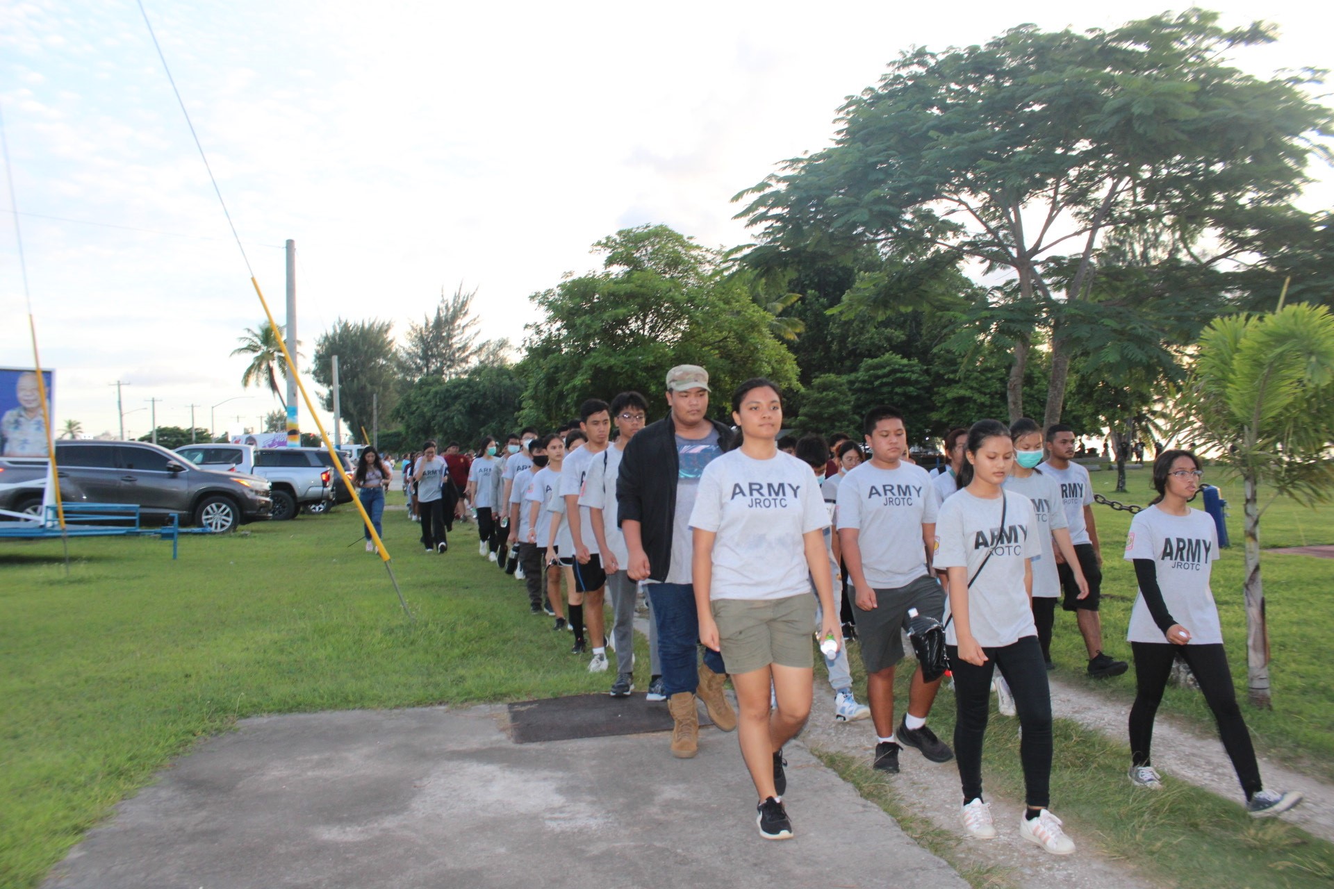 Throughout the walk cadets called cadence, lit up candles, and were able to get free items provided by the CNMI Suicide Prevention Program, such as t-shirts, lanyards, PopSockets, etc.