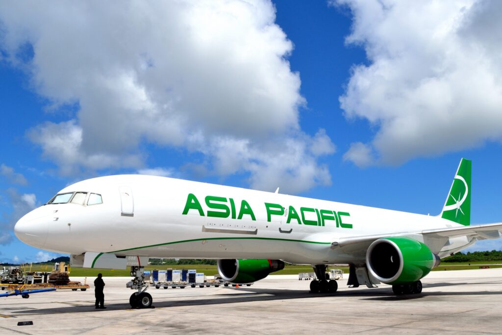 An Asia Pacific Airlines Boeing 757. Prior to its Feb. 1 grounding by the Federal Aviation Administration, APA was the primary air cargo carrier for the Marshall Islands and other U.S.-affiliated islands in the region.