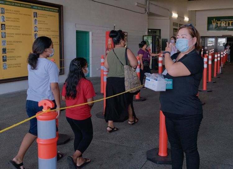 Rowena D.L. Baltazar, a certified nursing assistant with the Department of Public Health and Social Services, instructs incoming patients to wear masks Thursday, Aug. 3, 2023