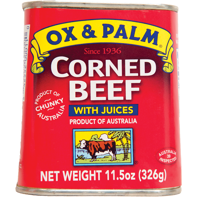 The product cans are labeled with various “Best Before” dates and the product cases are labeled with various shipping marks and products codes. Affected products include various styles of Ox & Palm Corned Beef in can.