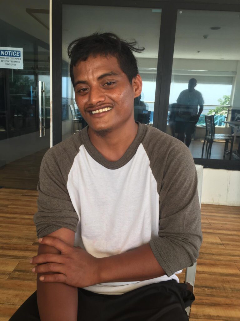 Marshallese fisherman Michael Lemari, one of 22 aboard the purse seine vessel Yap Seagull, left the sinking vessel with only the clothes he was wearing as it sank quickly Friday morning off the Marshall Islands capital atoll, Majuro.