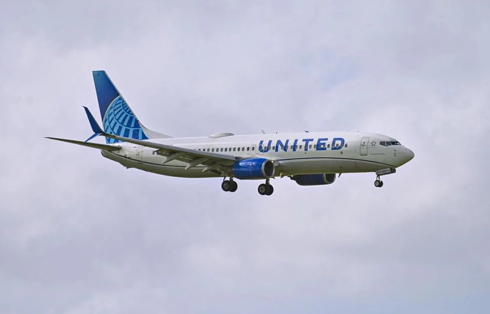 A United Airlines aircraft comes in for a landing at the A.B. Won Pat International Airport on Feb. 4, 2024, in Tiyan.