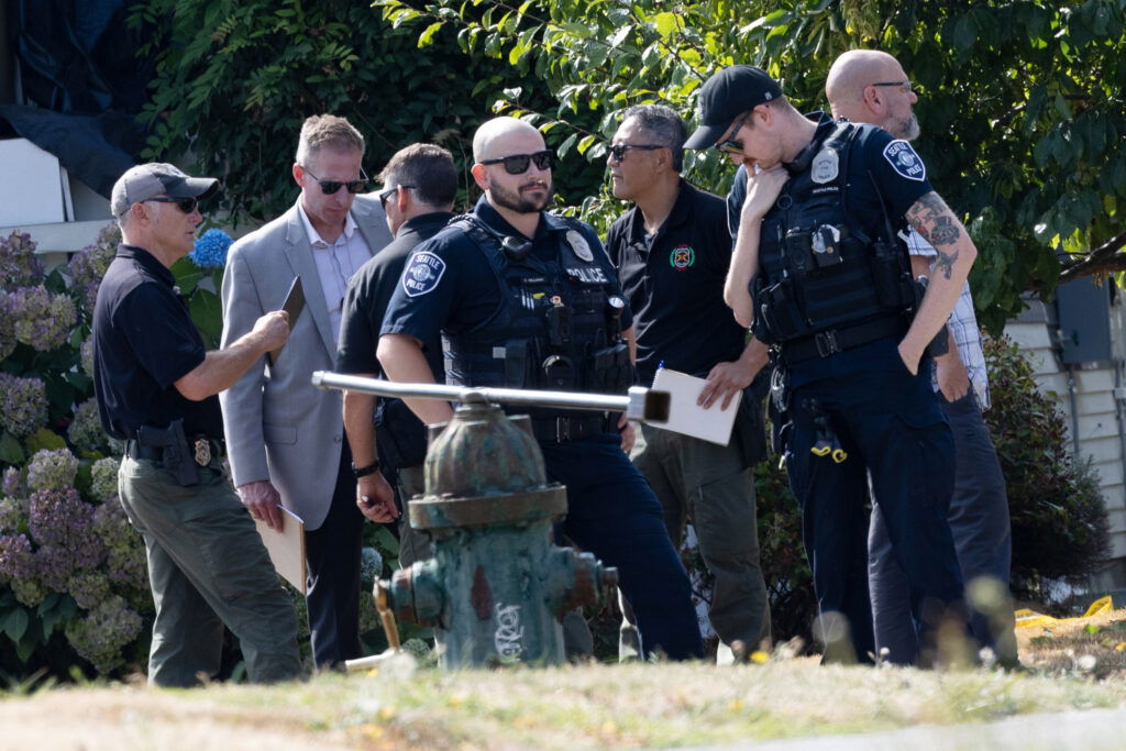 Seattle police and fire teams respond to a fire and reported shooting at a Wallingford home in the 1000 block of North 48th Street in Seattle on Sept. 2, 2023. (Karen Ducey/The Seattle Times/TNS)