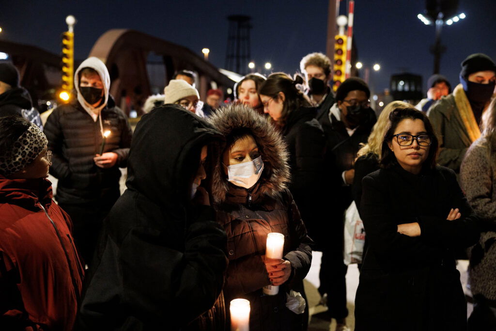 Volunteers, activists and members of the community attend a vigil for 5-year-old Jean Carlos Martinez Rivero, who died on Dec. 17, 2023, at a Lower West Side neighborhood shelter in Chicago, on Dec. 20, 2023. (Armando L. Sanchez/Chicago Tribune/TNS)