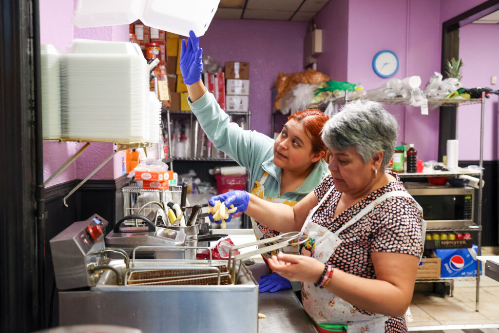 Johanna Rangel and her mother, Juana Arreguin, prepare food at their family's shop, Nevería El Sabor de México, in Chicago's Pilsen neighborhood on Oct. 12, 2023. (Eileen T. Meslar/Chicago Tribune/TNS)