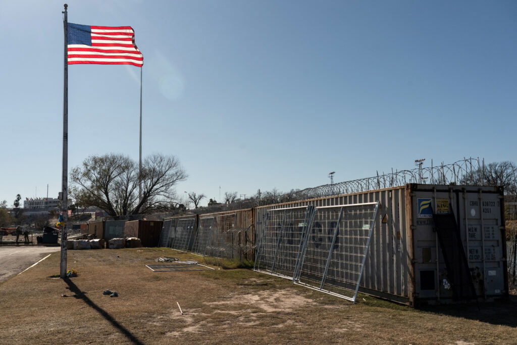Shipping containers and concertina wires are used as border fence on the bank of the Rio Grande river in Eagle Pass, Texas, U.S., January 17, 2024.