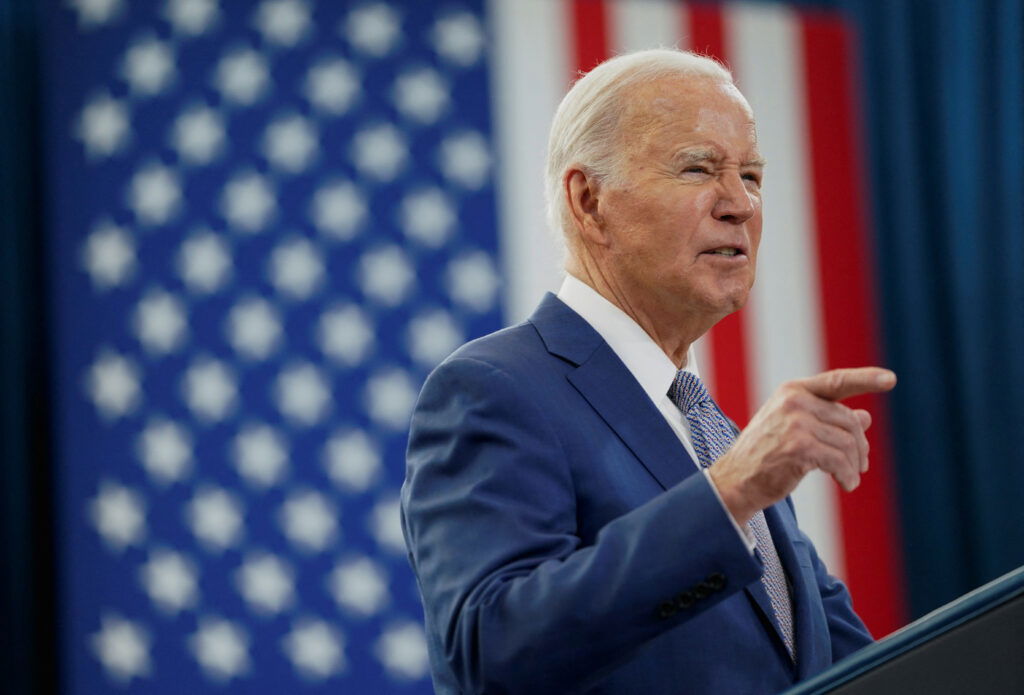 U.S. President Joe Biden delivers remarks on his economic plan during a visit to Abbotts Creek Community Center in Raleigh, North Carolina, U.S., January 18, 2024.