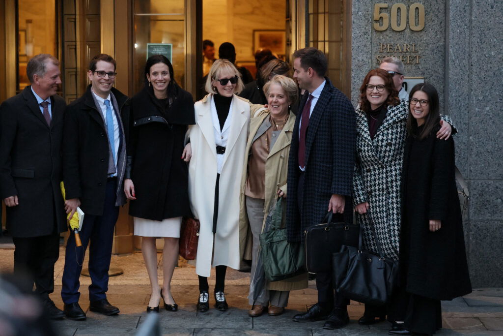 E. Jean Carroll and her attorneys Shawn Crowley and Roberta Kaplan walk outside the Manhattan Federal Court, after the verdict in the second civil trial after she accused former U.S. President Donald Trump of raping her decades ago, in New York City, U.S., January 26, 2024.