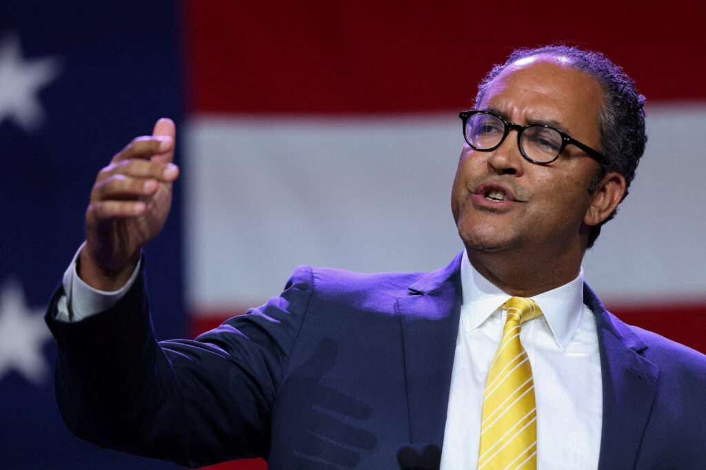 Republican presidential candidate Will Hurd speaks at the Republican Party of Iowa’s Lincoln Day Dinner in Des Moines, Iowa, U.S., July 28, 2023.