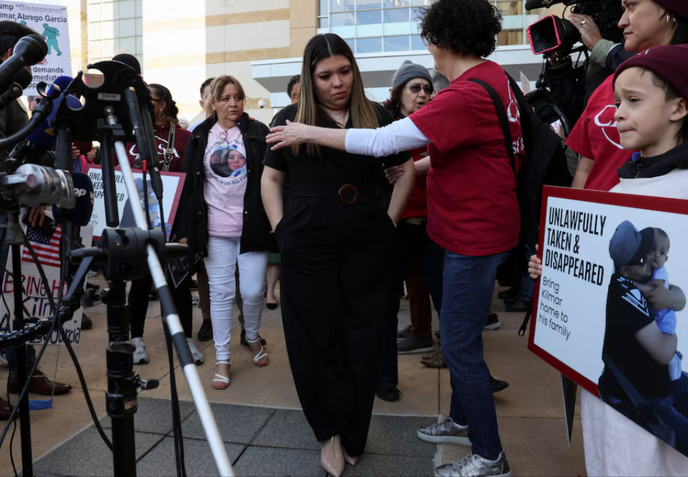 Before the hearing, Abrego Garcia’s wife, Jennifer Vasquez Sura, urged Trump and Bukele to return her husband.