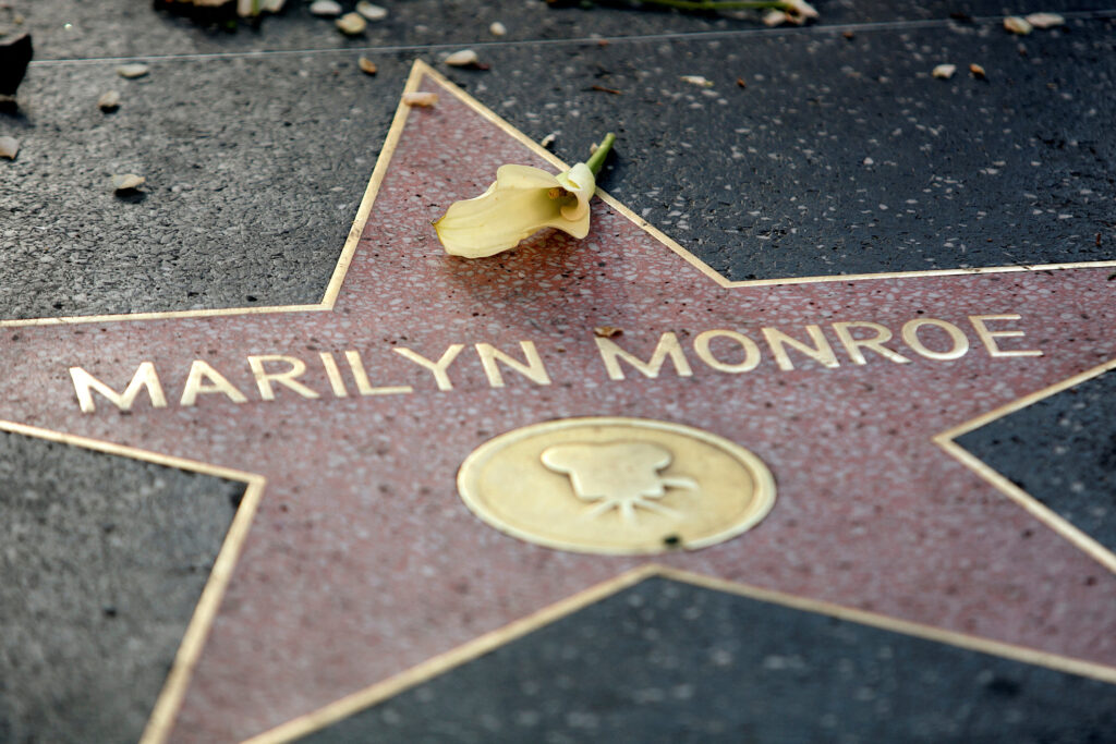 A flower lays atop the Hollywood Walk of Fame star for the late actress Marilyn Monroe in Hollywood August 5, 2012. A memorial service was held in Los Angeles to mark the 50th anniversary of Monroe’s death.