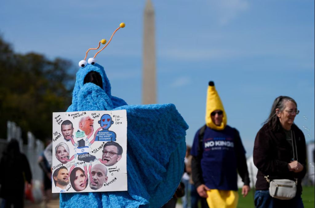 (Reuters) — Protesters spanning all age groups, many with children and pets in tow, took to the streets en masse for “No Kings” rallies across the United States on Saturday, denouncing what they view as authoritarian tendencies and unbridled corruption of President Donald Trump.