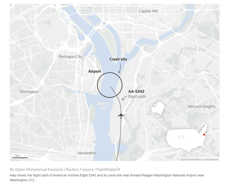 “Everything was routine up to the point of the accident,” Virginia Governor Glenn Youngkin told Reuters. The airport is located just across the river from Washington, in Virginia.