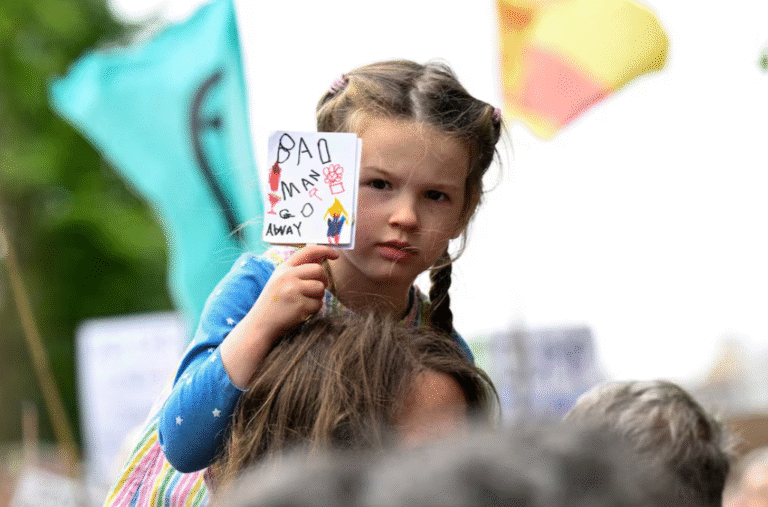 A child holds a placard as anti-Trump demonstrators gather during a rally organized by the campaign group Stop Trump Coalition, protesting the visit of President Donald Trump, in Edinburgh, Scotland, Britain, July 26, 2025. REUTERS EDINBURGH, Scotland (Reuters) — President Donald Trump kept a low p…