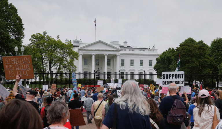 People take part in a protest against President Donald Trump, tariffs, deportations, a variety of other policies, and Elon Musk at the White House in one of many demonstrations taking place nationwide, in Washington, D.C., on April 19, 2025. REUTERS WASHINGTON (Reuters) — Thousands of protesters ra…