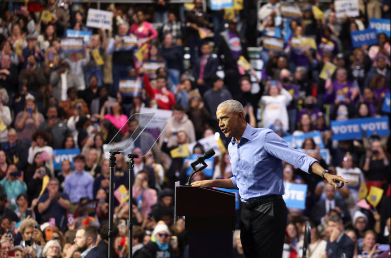 (Reuters) — Former President Barack Obama touted Democratic candidates for governor in two states at campaign rallies on Saturday, urging voters in next week’s election to reject what he called the “lawlessness and recklessness” of President Donald Trump’s administration.