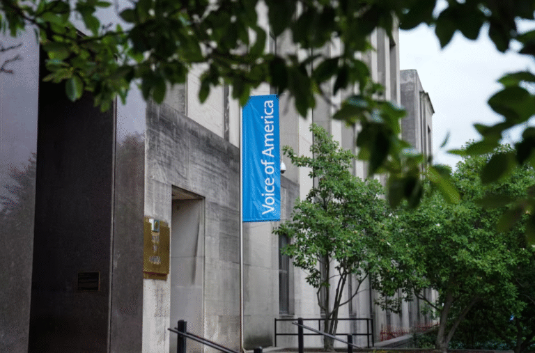 A view of the exterior of the U.S. Agency for Global Media building, where government funded media company Voice of America is based, in Washington, D.C., June 14, 2022. REUTERS (Reuters) — More than 1,300 Voice of America employees were placed on leave on Saturday and funding for two U.S. news ser…